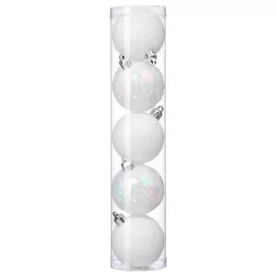 Najlepsze dekoracje na choinkę - bombki świąteczne o średnicy 5 cm Bombki o różnym wykończeniu, Ø 5 cm, 5 szt. : Te piękne bombki o średnicy 5 cm będą doskonałym dodatkiem do Twojego drzewka. W zestawie znajduje się 5 sztuk bombek o różnym wykończeniu, które dodadzą blasku i magii Twojemu świątecznemu wystrojowi. Wymiary: Każda bombka ma wymiary 5 x 5 x 6,2 cm, co sprawia, że są one idealne do zawieszenia na choince lub dekoracji w różnych miejscach w domu. Różne wykończenia: