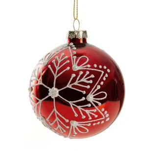 Bombka szklana dekorowana 8 cm czerwono-biały