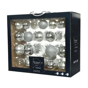 Bombki szklane mix połysk/mat/brokat/transparentne 7 cm srebrne 42 szt.