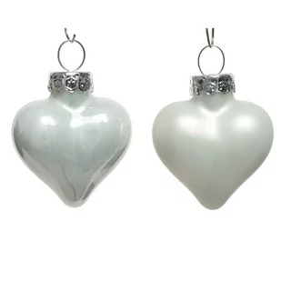 Bombki szklane Zestaw bomek szklanych w kształcie serca z wykończeniem matowym i połyskującym w ilościach losowych. Kolor: biały Materiał: szkło Rozmiar: 2cm długości, 4,5cm szerokości, 4cm wysokości Ilość sztuk w opakowaniu: 12 bombek