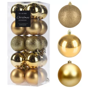 BOMBKI CHOINKOWE ⭐20 sztuk ⭐4cm średnicy Zestaw ozdób choinkowych z trzema różnymi rodzajami bombek. Zestaw zawiera błyszczące, matowe i brokatowe kule. 3 różne rodzaje bombek choinkowych do różnorodnych potrzeb w zakresie dekoracji bożonarodzeniowych. ⭐⭐⭐⭐⭐⭐⭐⭐⭐⭐⭐⭐⭐⭐⭐⭐⭐⭐⭐⭐⭐⭐⭐ Czysty złoty kolor zapewnia wspaniałą i wyjątkową atmosferę, która rozświetla choinkę i delikatnie przyciąga wzrok. Są nie tylko ładne na choince, ale również wspaniałym uzupełnieniem dekoracji zimowych i adwentowych.