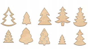 ZESTAW drewnianych choinek MIX WZORÓW widocznych na zdjęciu SPECYFIKACJA WYSOKOŚĆ drzewek: 15-30mm Technika wykonania: wycinane laserowo Kolor: surowy - niemalowany, naturalne drewno Materiał: sklejka brzozowa 3mm KOMPLET 80 sztuk Nadaj świąteczny klimat swoim projektom.