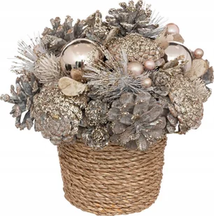 Dekoracja świąteczna Atmosphera Kompozycja z szyszek i bombek w plecionej doniczce, 19 cm