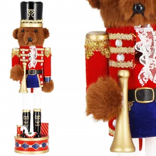miś - dziadek do orzechów Wysokość całkowita: ok 38 cm Szerokość całkowita: 10 cm Wysokość podstawy: ok. 4 cm Średnica podstawy: 9 cm Kolor: