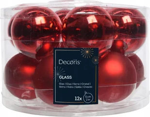 Kaemingk Zestaw 12 szklanych bombek choinkowych 5cm czerwone błyszczące matowe