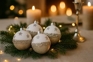 Komplet 4 bombek szklanych 8 cm biały-złoty 8448