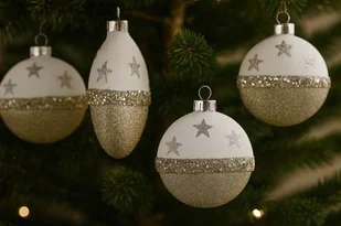Komplet 4 bombek szklanych 8 cm biały-złoty 8450
