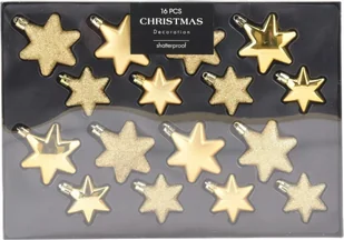 Koopman Zestaw 16 bombek choinkowych 6cm Złote gwiazdki