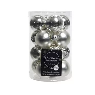 Małe bombki szklane Zestaw małych, dekoracyjnych bombek szklanych z wykończeniem matowym i połyskującym w ilościach losowych. Mały rozmiar pozwala na użycie bombek w dekoracjach, ale także świetnie się spisują w roli bombek na choince. Kolor: srebrny Materiał: szkło Ilość sztuk w opakowaniu: 16 bombek Rozmiar:
