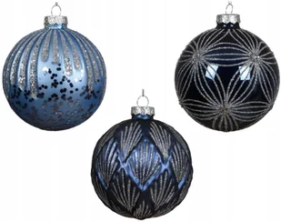 Kaemingk Niebiesko-srebrna bombka choinkowa szklana 10cm brokatowa 1szt