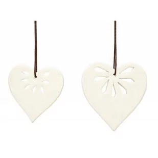 ozdoby świąteczne Serce w skład zestawu wchodzą 2 ozdoby w różnych rozmiarach wykonane z ceramiki w kolorze białym kształt serca kolor: biały materiał: ceramika wymiary mniejszej ozdoby (wysokość x szerokość): 8x7,5 cm wymiary większej ozdoby (wysokość x szerokość): 9,5x9 cm