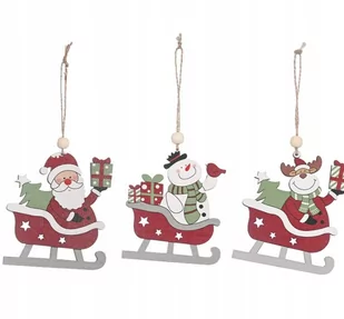 Zestaw trzech przeuroczych ozdób choinkowych (wykonanych z drewnianej sklejki) do dekoracji choinki bożonarodzeniowej bądź ozdoby domu. Mikołaj, bałwanek i renifer w saniach dodadzą uroku i wprowadzą świąteczną atmosferę w domu. Te urocze zawieszki sprawdzą się również jako wspaniały upominek dla najbliższych osób. Ozdoby wykonane są z naturalnego drewna. Ten dobór materiału sprawi, że ta dekoracja będzie prawdziwą ozdobą każdego domu.