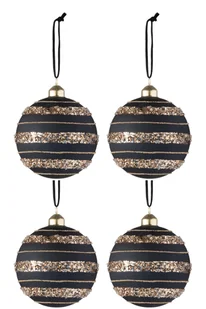 Puszka 4 bombek choinkowych szklanych cekinowych matowych czarnych/złotych średnich