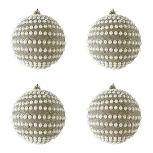 RE6948- CHRISTMAS TREE BALLS: Ten zestaw 4 dużych bombek to elegancki dodatek do dekoracji. Bombki są pokryte błyszczącymi koralikami, które łapią światło i tworzą promienny i wyrafinowany efekt na choince.