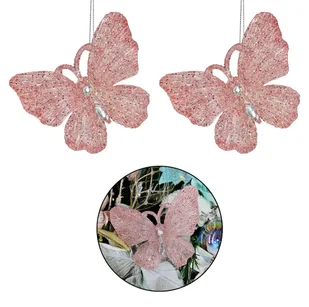 RÓŻOWE MOTYLKI NA CHOINKĘ - ZESTAW 2 SZT ZAWIESZEK 9X10 CM