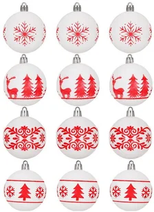 Bombki choinkowe 7 cm 12 szt. zestaw ozdoby świąteczne zdobione matowe, białe z wzorami