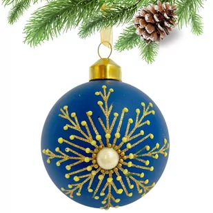 SZKLANA BOMBKA MATOWA NIEBIESKA ZŁOTA ŚNIEŻYNKA Z PEREŁKĄ Ta szalenie elegancka bombka szklana niebieski mat z brokatowym dekorem, to dekoracja świąteczna, która świetnie się sprawdzi na Waszych choinkach ! Te piękne, wykonane ze starannością ozdoby dodadzą natychmiast luksusowego, świątecznego klimatu do Waszego otoczenia. Wielkość: 8 cm Wymiary Wysokość: 8 cm Cechy szczególne Kolor: niebieski mat Rodzaj bombki: Bombka dekorowana Materiał: