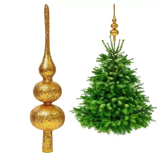 Złoty zdobiony brokatem. 5️⃣ Instalacja: Otwór na czubek choinki 6️⃣ Pochodzenie: Produkt pochodzi z polskiej wytwórni ozdób choinkowych. Podana cena dotyczy 1 szt.