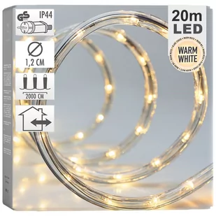 OŚWIETLENIE LED - Lampki posiadają 20 metrów led o ciepłej, białej barwie (24 led na 1 metr). Oświetlenie wprowadzone jest w przezroczystym przewodzie. Zasilane sieciowo, odległość kabla do pierwszej lampki wynosi 1,5 metra. Średnica węża wynosi 12 mm. BEZPIECZNE - Produkt posiada zabezpieczenie IP44, jest odporny na warunki atmosferyczne.
