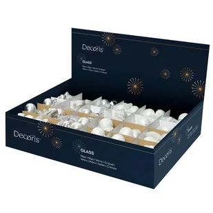 Wiązka bombek szklanych mix kształtów 3,5 x 4 x 11,5 cm 2 sztuki biało-srebrny