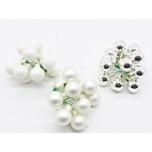 Wiązka bombek szklanych na druciku 2,5 cm 12 sztuk biały / srebrny