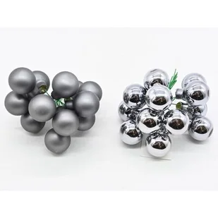Wiązka bombek szklanych na druciku 2,5 cm 12 sztuk grafitowy / srebrny