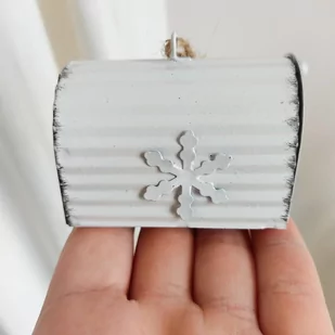 Zawieszka metalowa, skrzynka h6cm - biały Zapraszamy do naszego sklepu internetowego, gdzie znajdziesz wyjątkową ozdobę świąteczną - zawieszkę metalową. Ta elegancka zawieszka w kształcie skrzynki o wysokości 6 cm dodaje uroku i magii każdej choince. Nasza zawieszka metalowa jest dostępna w kolorze białym, który pięknie podkreśla świąteczną atmosferę. Wykonana z wysokiej jakości metalu, zawieszka ma matowe wykończenie, dodając jeszcze większej elegancji. Zawieszka ma wymiary 6 cm wysokości i 4 cm szerokości, dzięki czemu doskonale pasuje na gałązki choinki, nie dominując nad innymi ozdobami.