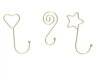 Zawieszki do bombek Złote zawieszki metalowe z zakończeniem w różnych kształtach. W opakowaniu znajduje się 48 sztuk. Zawieszki są w kształcie spirali, serduszka i gwiazdki. Stanowią idealny dodatek który ozdobi każde drzewko i upiększy każdą bombkę. Rozmiar: 2 x 5cm Kolor: