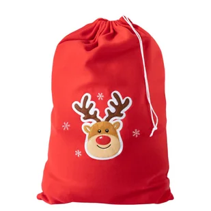 Opis: Worek na prezenty z reniferem Kolor: Czerwony, biały Materiał: Flizelina Ilość sztuk w opakowaniu: Jedna Wymiary: Wysokość 80cm Obwód: 50cm