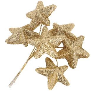 [680159] Gwiazdki brokatowe na druciku 4,5cm 6szt złote