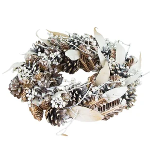 Opis: Wianek świąteczny z szyszkami i liśćmi laurowymi Kolor: Brązowy oszroniony Liczba sztuk w opakowaniu: Jedna Wymiary: Średnica: 30 cm Wysokość: 8 cm