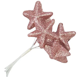 Opis: Gwiazdka brokatowa na druciku Kolor: Przydymiony różowy Ilość sztuk w opakowaniu: Sześć Wymiary: Średnica gwiazdki: 4,5cm Wysokość całkowita: 10cm