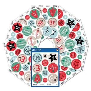 AVERY Zweckform Naklejki na kalendarz adwentowy z liczbami (naklejki na Boże Narodzenie, samoprzylepne liczby adwentowe 1-24, zrób to sam", przypinka, naklejki gwiazdowe, prezenty) art. 51010