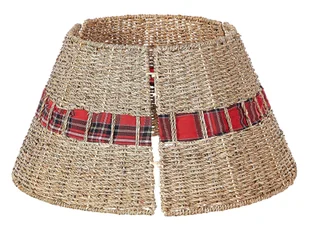 Ręcznie wykonany pokrowiec na stojak choinkowy. Urozmaić wygląd swojej choinki i dodaj boho akcentu do pokoju dzięki temu wyjątkowemu kołnierzowi choinkowemu. Pozwala ona zręcznie ukryć kabel lampek choinkowych, stojak choinkowy lub wiadro i chronić spód choinki przed ciekawskimi zwierzętami. Obroża choinkowa wykonana jest z wytrzymałego splotu trawy morskiej, który został wykonany ręcznie z dbałością o szczegóły. Zachwyca naturalnym kolorem i czerwoną wstążką z tkaniny, która tworzy świąteczną atmosferę dzięki motywowi tartanu.