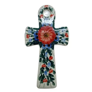 Krzyż wiszący (A235 D28) Oryginalne ceramiczne krzyżyki wiszące, ręcznie malowane w rodzinnej fabryce ceramiki artystycznej w Bolesławcu, ANDY Ceramika. Krzyż na ścianę z możliwością zawieszenia, dzięki otworowi w górnej części krzyża. Stanowi idealny dodatek również do świątecznych stroików na stół czy jako element dekoracji ściennej domu. Krzyże ceramiczne to ozdoby i symbole religijne, ręcznie malowanie w tradycyjne i unikatowe wzory ceramiki artystycznej. Krzyż ceramiczny doda elegancji twojego wystroju domu i sprawi, że tradycyjny krzyż drewniany bądź metalowy zostanie zastąpiony krzyżykiem ceramicznym.