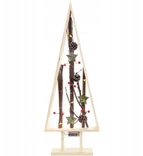 ⭐️Dekoracyjna Drewniana Choinka z Oświetleniem LED i Naturalnymi Dodatkami⭐️ Bardzo prosta, a zarazem elegancka choinka dekorowana naturalnymi gałęziami, szyszkami i jarzębiną wprowadzi niepowtarzalny klimat do każdego wnętrza. ⭐️Stojąca, drewniana choinka w kształcie trójkąta z oświetleniem 10 LED zasilana na dwie baterie typu paluszki. ⭐️ ⭐️Parametry⭐️ Wysokość: 56 cm Szerokość: 20 cm Głębokość: