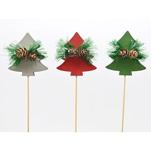 Choinka z gałązką i szyszkami na piku 32,5 x 7 cm czerwony / zielony / szary