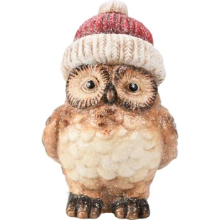 Piękna świąteczna dekoracja przedstawiająca uroczą sowę w czerwonej czapce uszczęśliwi Ciebie i Twoje dzieci. Ma na sobie błyszczący brokat. Udekoruj nią półkę w salonie lub umieść ją w pokoju dziecięcym.