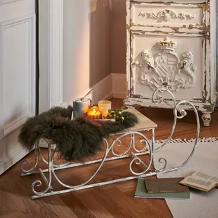 Już sam ich wygląd sprawia, że można się rozmarzyć – niemal widzisz magiczne renifery Świętego Mikołaja, które zwykle ciągną je w powietrzu. Wykorzystaj je w praktyczny sposób jako półkę do przechowywania lub stolik pomocniczy albo stwórz wyjątkową dekorację świąteczną. Jeśli tylko zechcesz, możesz cieszyć się tym cennym dodatkiem w stylu shabby chic przez cały rok – na przykład jesienią w połączeniu z dekoracją z dyni.
