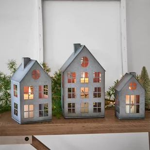 Te trzy urocze małe domki zostały wykonane ręcznie z żelaza i emanują odrobiną industrialnego uroku. W zestawie otrzymujesz trzy rozmiary, dzięki którym możesz cieszyć się świąteczną dekoracją. Bez dodatków lub ze świeczkami w środku – niezależnie od aranżacji stanowią uroczy dodatek z indywidualnym akcentem. Umieszczone na parapecie, jako dekoracja stołu lub w innym miejscu – zawsze wniosą do Twojego domu wyjątkową przytulność. Jeśli chcesz, możesz cieszyć się domkami przez cały rok i dekorować je sezonowo.