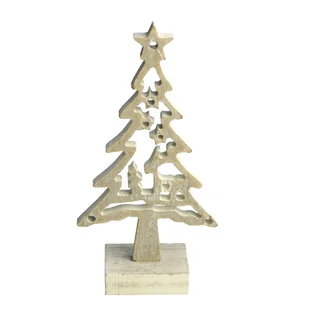 Drewniana choinka dekoracyjna 20 cm Piękna, tradycyjna ozdoba bożonarodzeniowa - idealna do dekoracji domu i na prezent. Cechy produktu: choinka wykonana z drewna w naturalnych odcieniach stylowe, postarzane wykończenie wewnętrzne gwiazdki i postać renifera dodają jej uroku i delikatności optymalny rozmiar - praktyczny i funkcjonalny idealna ozdoba na komodę czy kominek doskonała na prezent wprowadza do wnętrz ciepłą, świąteczną atmosferę pasuje do nowoczesnych wnętrz i aranżacji, świetnie komponuje się ze świecami, światełkami LED i innymi świątecznymi ozdobami. Dane techniczne: Drewniana choinka dekoracyjna 20 cm Wysokość: