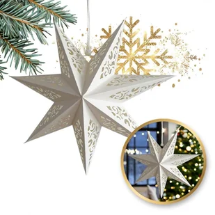 DUŻA GWIAZDA PAPIEROWA ŚWIĄTECZNA AŻUROWA biała 35 cm WITRAŻ 3D WG02