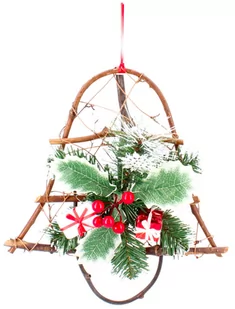 DZWONEK DREWNIANY wiszący 30cm Dzwonek z motywem świątecznym Idealna dekoracja do wykorzystania w wielu aranżacjach Świetnie sprawdzi się jako stroik wykorzystany na świątecznym stole czy też ozdoba drzwi lub ścian Posiada wstążkę ułatwiającą zawieszenie Lekka konstrukcja nie wymagająca inwazyjnego montażu Zastosowane ozdoby w postaci gałązek choinki oraz dodatków wprowadzą nas w nastrój świąt Bożego Narodzenia Wysokość dzwonka 30cm