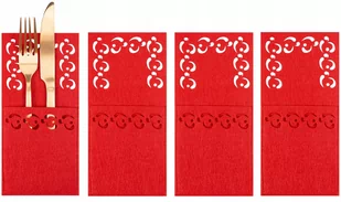 Świąteczne czerwone etui pokrowce na sztućce CENA DOTYCZY KOMPLETU 4 szt. Piękne czarne pokrowce na sztućce będą doskonałą dekoracja do domu na okres świątec...