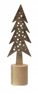 Figurka świąteczna na półkę choinka Figurka świąteczna w kształcie choinki idealnie wpasuje się w świąteczny klimat. Stanowi oryginalne uzupełnienie wystroju. Dekoracja nada się jako element kompozycji lub samodzielna ozdoba. Można ustawić ją w dowolnym miejscu w mieszkaniu tak by przykuła uwagę zarówno domowników jak i gości. Podstawa wykonana z drewna, góra z metalu.