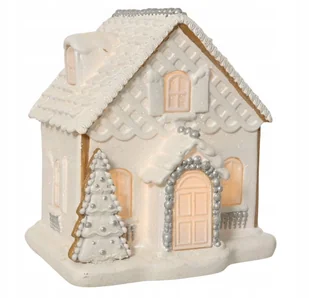 Figurka świąteczna tworzywo sztuczne domek biały LED 18,5x21cm 1szt