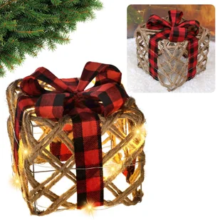 Jutowy prezent z kokardą LED, ozdoba świąteczna 15cm