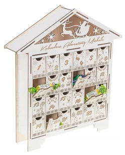 Mamy dla Ciebie specjalna ofertę - kalendarz adwentowy, w formie drewnianego domku, który posiada 24 szufladki na słodycze lub drobne przedmioty. Świetnie sprawdzi się jako ozdoba świąteczna w Twoim domu.