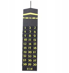 Kalendarz adwentowy Eid Dekoracje imprezowe kalendarz odliczający Eid Wykonany z filcowego materiału szmatkowego z dotykiem komfortu, łatwy do czyszczenia. Wszystko z motywami EID, świetnie nadaje się do dekoracji Ramadanu. Zaprojektowane 30 kieszeni, do przechowywania innych przedmiotów. Wymiary ok 94. 7x18. 7x1cm. Czarny, filcowy.