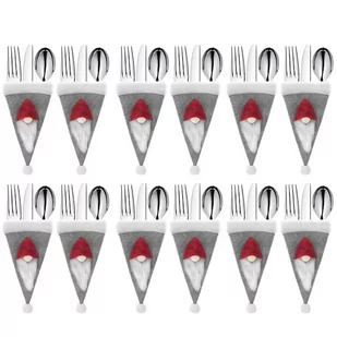 Zestaw 12 szt. pokrowców na sztućce to idealna ozdoba świąteczna, która doskonale sprawdzi się podczas przygotowania Bożonarodzeniowej zastawy stołu. Pokrowce w kształcie czapki wykonane są z szarej włókniny, która zapewni trwałość oraz wysoką jakość wykonania.